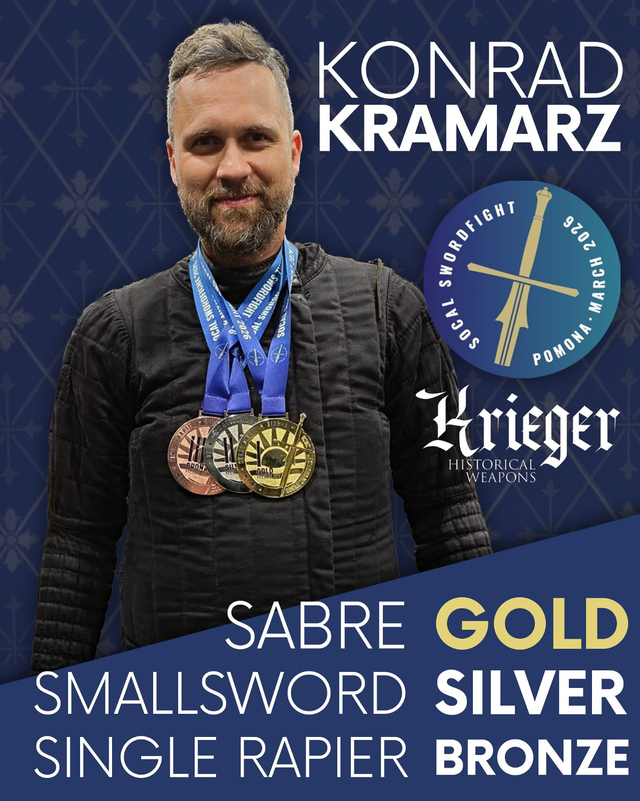 Wynik ten stawia go w ścisłej światowej czołówce zawodników tej wymagającej i dynamicznie rozwijającej się dyscypliny. SoCal Swordfight to wydarzenie gromadzące elitę światowej szermierki historycznej – miejsce, w którym rywalizują najbardziej rozpoznawalni i doświadczeni zawodnicy tej dyscypliny. W tej wymagającej, międzynarodowej konkurencji polski oficer sięgnął po złoty medal w szabli, potwierdzając swoją dominację w konkurencji, a jednocześnie wywalczył srebrny medal w szpadzie oraz brązowy w rapierze. Tak wszechstronny rezultat, osiągnięty w bezpośredniej rywalizacji z najlepszymi zawodnikami z całego świata, stanowi jedno z najbardziej znaczących osiągnięć polskiego żołnierza w historii szermierki historycznej.